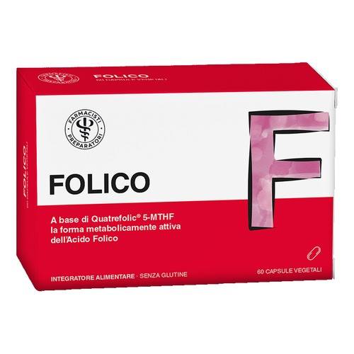 FOLICODescrizione Integratore alimentare a base di quatrefolic 5-MTHF, la forma metabolicamente attiva dell’acido folico, utile in gravidanza, per l’ emopoiesi, la funzione psicologica, del sistema immunitario e la riduzione della stanchezza. Fortemente consigliato per donne che ricercano o sono già in gravidanza (previo consiglio medico), neonati e bambini in fase di sviluppo (previo consiglio medico), soggetti con un’alimentazione povera di frutta e verdura. Ingredienti Maltodestrine, idrossi-propil-metilcellulosa, agenti antiagglomeranti: biossido di silicio, sali di magnesio degli acidi grassi; colorante: biossido di titanio; acid...